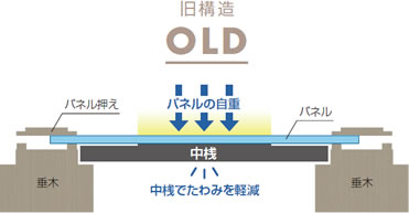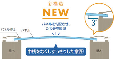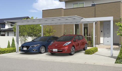 奥行き方向に勾配をつけた屋根で雨風から車を守るのはもちろん、室内側からの視界も良好です。屋根の中桟をなくすことでスッキリした構造になっています。