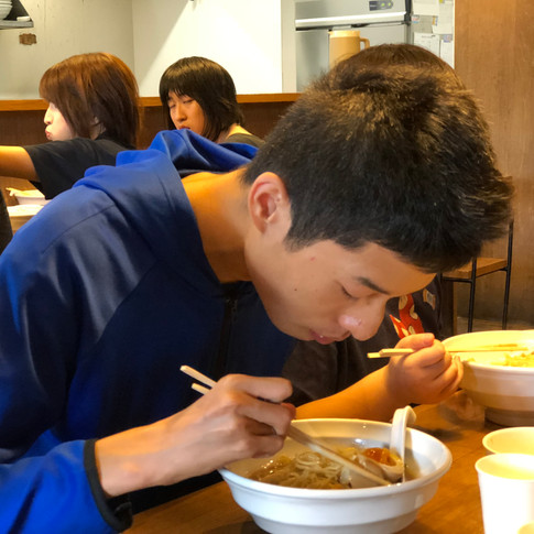 ラーメンを前に笑顔いっぱいの子、一生懸命食べ始める子・・・
